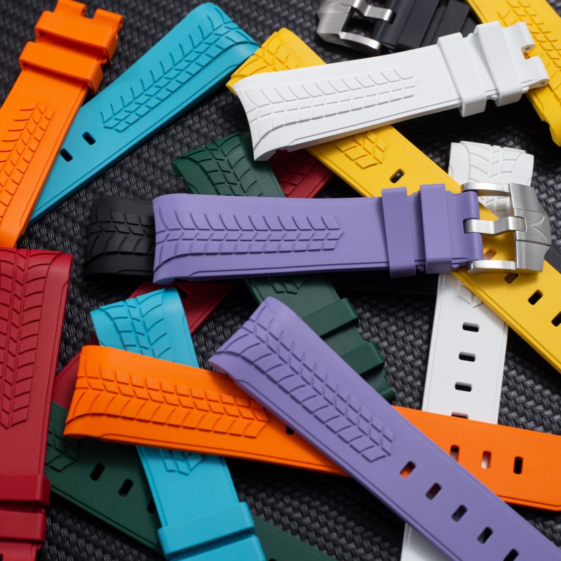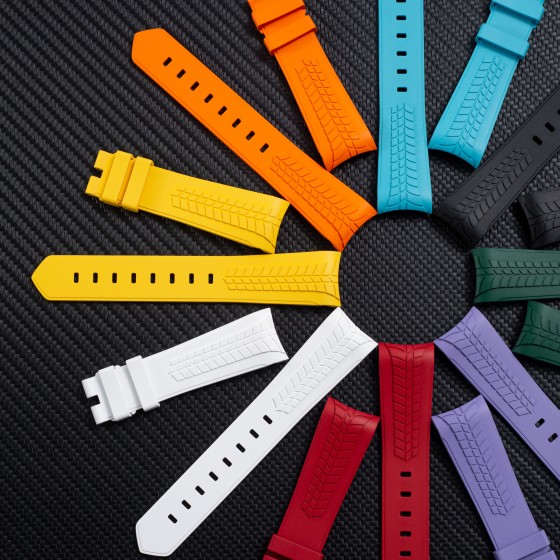 The one-piece strap with exclusive design is made of polymer composite rubber material with elegant lines.