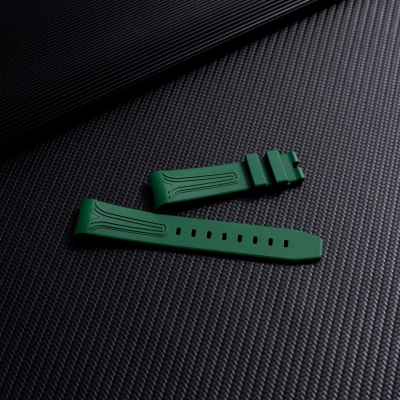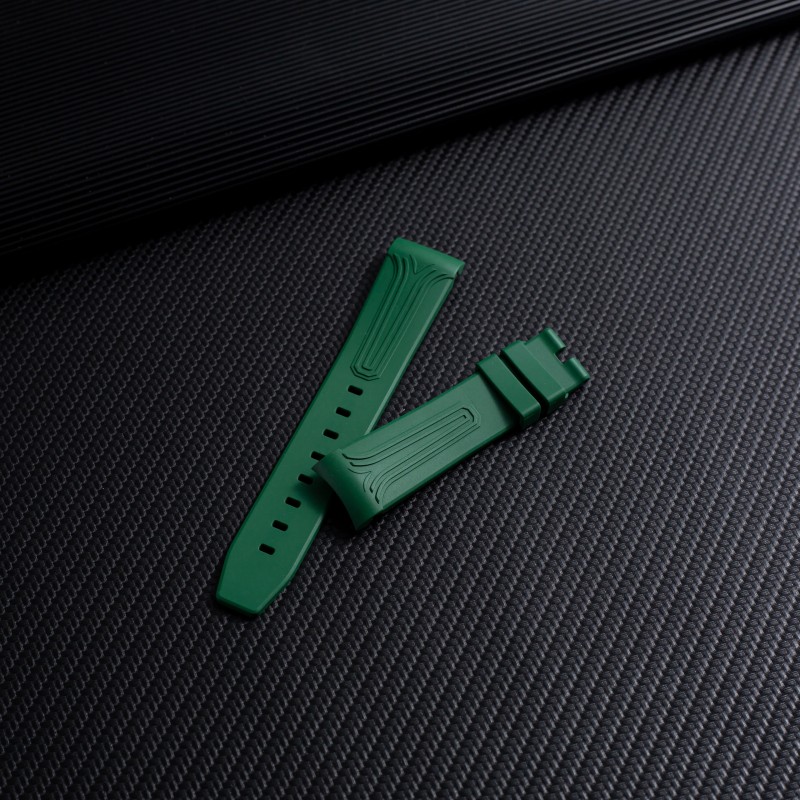 The one-piece strap with exclusive design is made of polymer composite rubber material with elegant lines.