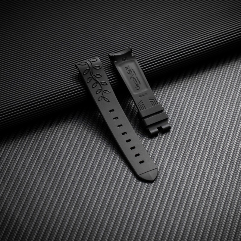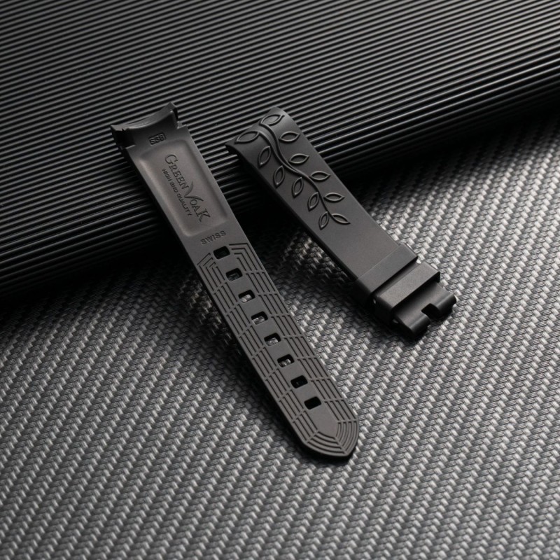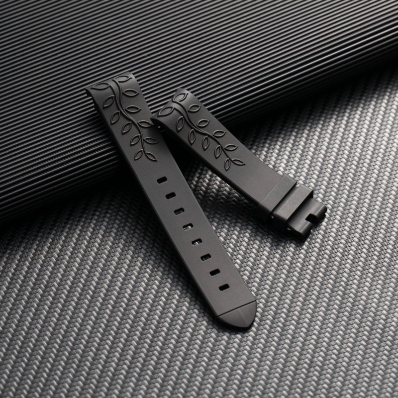 he one-piece strap with exclusive design is made of polymer composite rubber material with elegant lines.